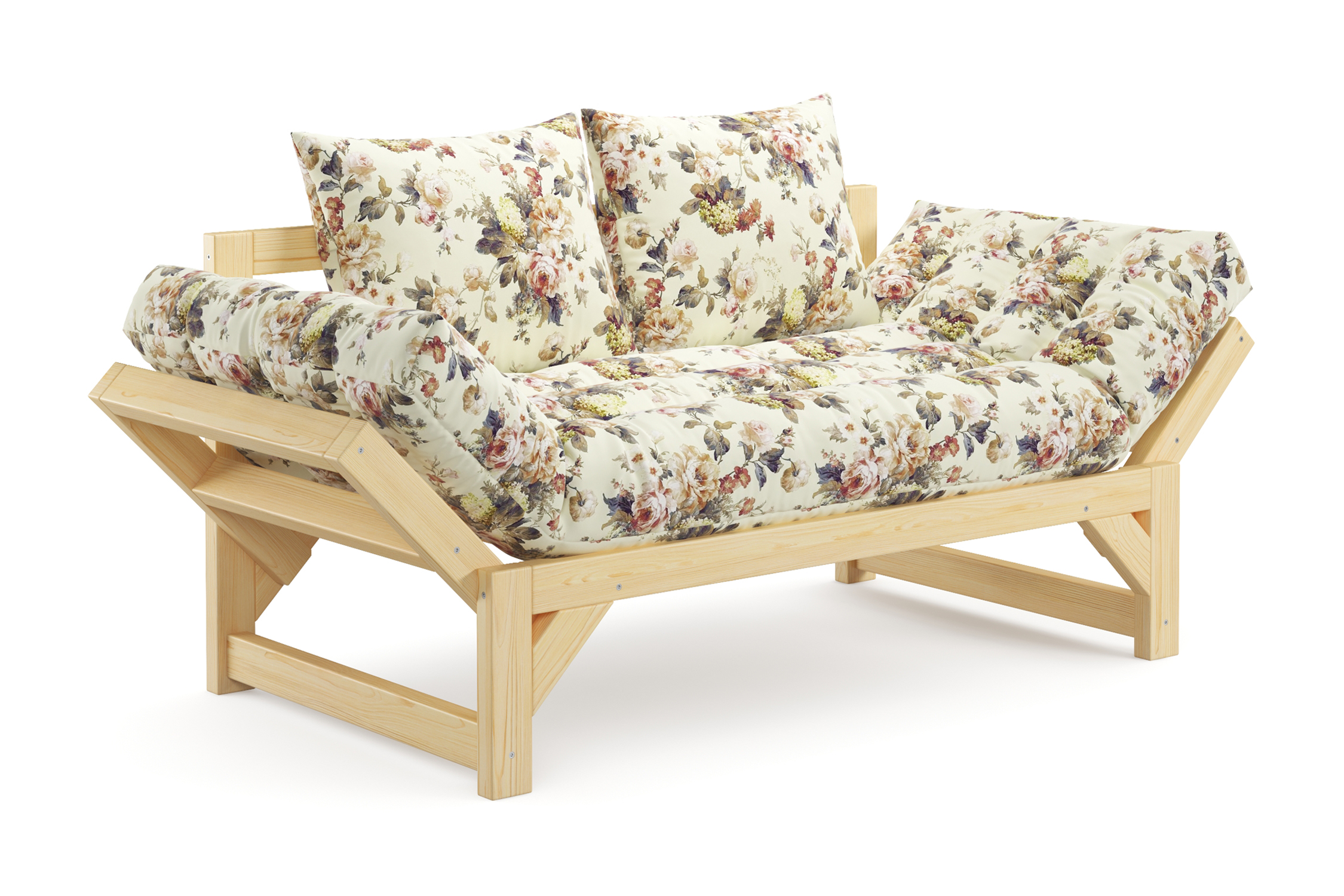 Максимальная нагрузка — 220кг. Ширина деревянной спинки 130 см. Приспинные подушки, представленные на фото, входят в комплект. Декоративные приобретаются отдельно. Диван продается без лакокрасочного покрытия, под самостоятельную покраску. Высота сиденья без матраса - 31 см, с матрасом 46 см.
