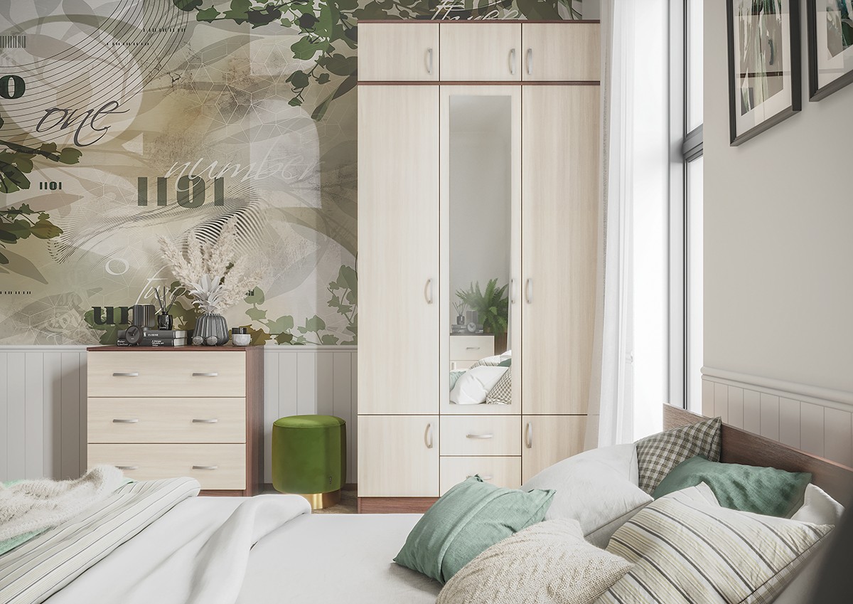 Шкаф Рига 3-х Створчатый с Зеркалом ШК-3/Разные Цвета (Ш-1200 х В-2120 х Г-520 мм)