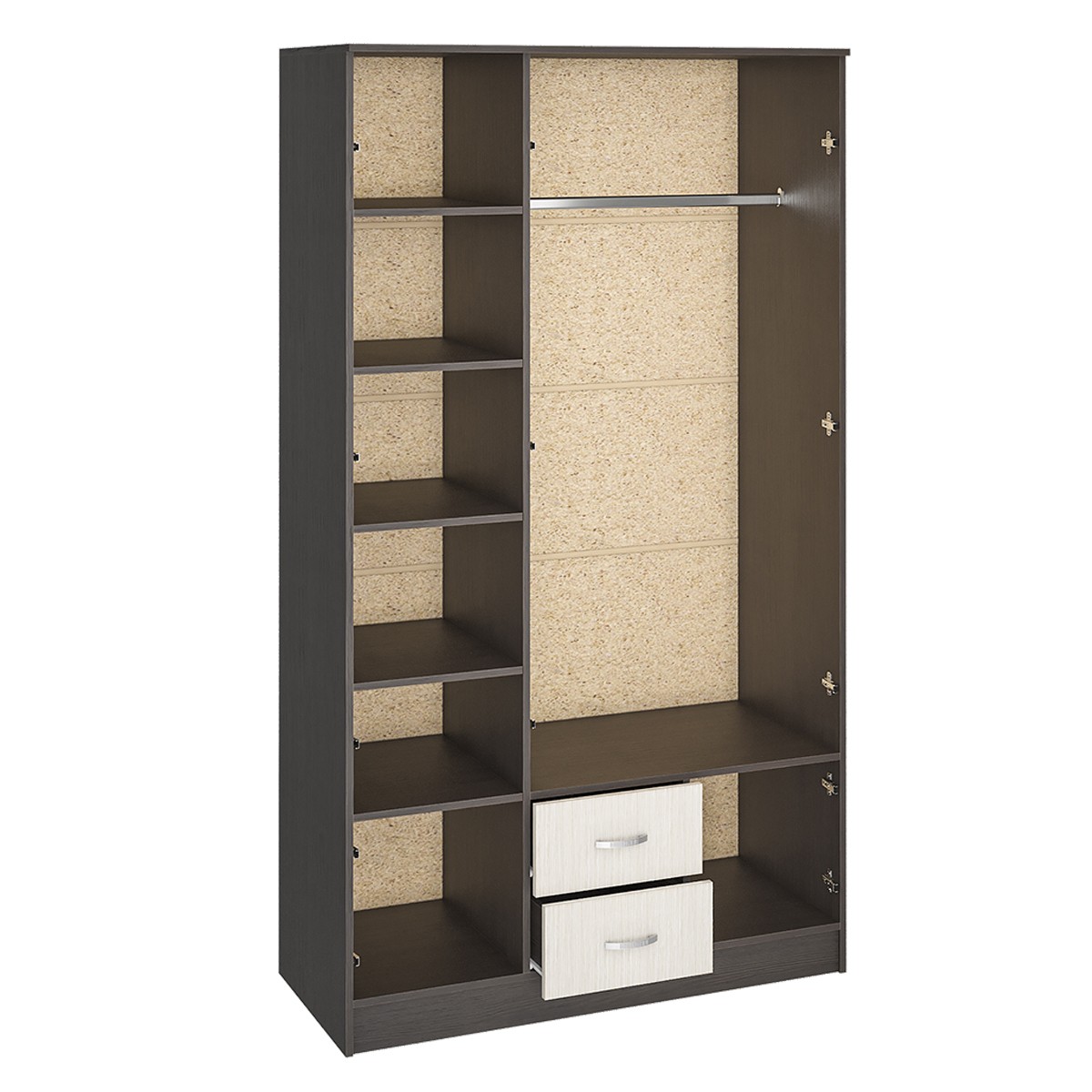 Шкаф был куплен 4 месяца назад. Был собран без проблем. За все время использования показал себя с лучшей стороны. Есть и полки и вешалки для одежды. Был доставлен быстро. Рекомендую к покупке.